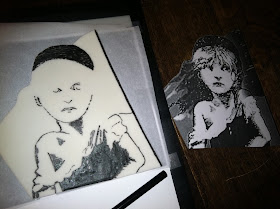 Then, I took it into PhotoShop,elevated the contrast, and printed out a few copies. I cut the image out, making sure to keep the outline fairly minimalist (any small bits would be candidates for breakage).